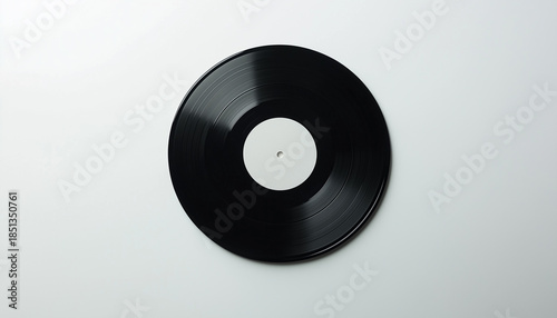 © wolfelarry, Obraz premium Blank vinyl record cover mockup with black disc on a clean white background.
