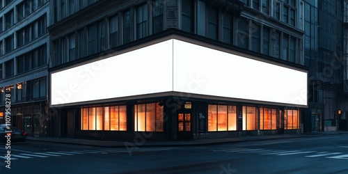 © Glce, Obraz premium blank white billboard mockup that wraps around the corner of a building