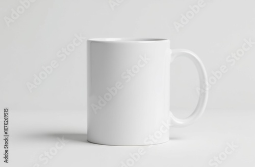 Fototapeta premium Blank White Ceramic Coffee Mug on Light Background, Angled for Logo or Design Placement