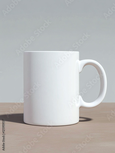 Obraz premium Blank white ceramic coffee mug on smooth surface against a minimalist...