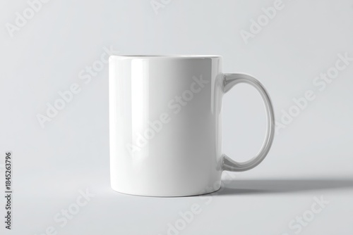 Fototapeta premium Blank white ceramic mug mockup centered on a light gray background.