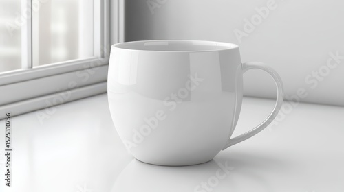 © Andi, Obraz premium Blank white ceramic mug on a surface.