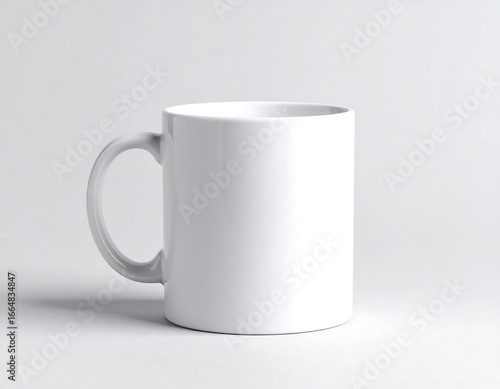 © gilang, Obraz premium Blank White Ceramic Mug on Light Gray Background.