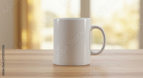 © Xem, Fototapeta premium Blank White Coffee Mug Mockup on a Wooden Table