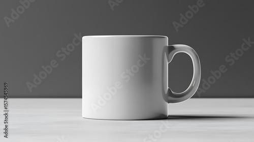 © Nangkir, Obraz premium Blank white coffee mug on a light surface.