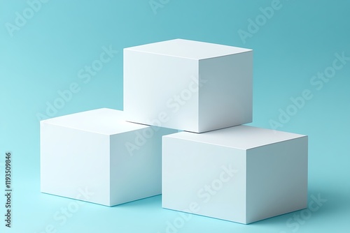 © Mainul, Obraz premium Blank White Cubes on a Light Blue Background for Product Presentation