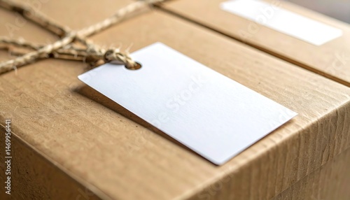 Obraz premium Blank White Gift Tag on Brown Cardboard Box
