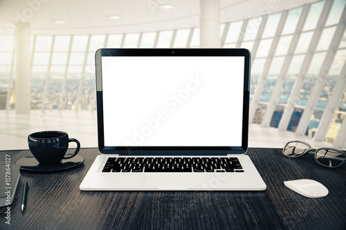 © Who is Danny, Fototapeta premium Blank white laptop closeup