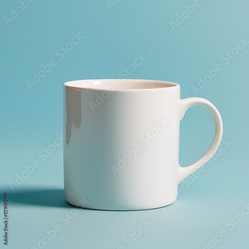 © richirich, Obraz premium Blank white mug mockup on blue background.