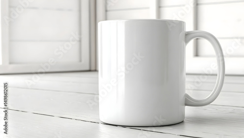 Obraz premium Blank White Mug Mockup on White Surface
