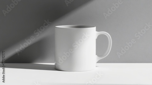 Fototapeta premium Blank white mug on a white surface.