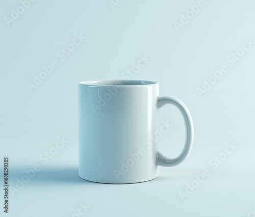 © Chika, Fototapeta premium Blank white mug on light blue background