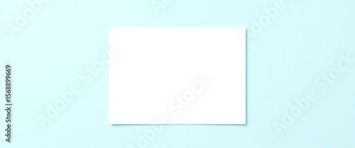 Fototapeta premium Blank white paper sheet centered on a soft light blue background