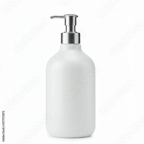 Fototapeta premium Blank White Plastic Bottle with Silver Pump Dispenser