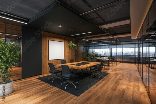 Naklejka premium Blank white poster mockup on a black interior, room, frame, poster,...