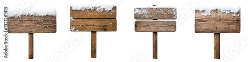 © R Studio, Fototapeta premium Blank wooden sign post or board with snow and ice covered surface providing copyspace for text or graphics Rural winter landscape background with frosty frozen environment
