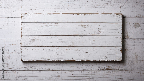 © Wonderful Studio, Naklejka premium Blank wooden sign. Rustic white wooden plank on a light wooden background.