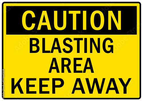 Fototapeta premium Blasting area warning sign and label keep away