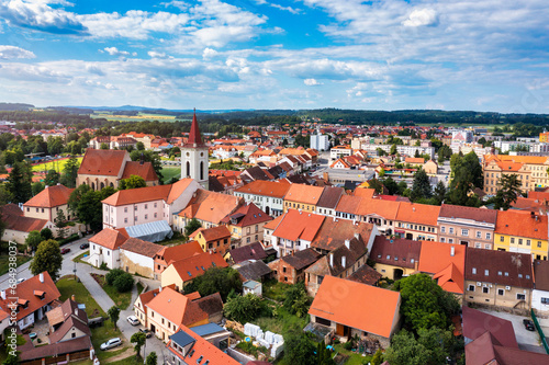 Obraz premium Blatna town near Strakonice, Southern Bohemia, Czech Republic. Aerial view of...