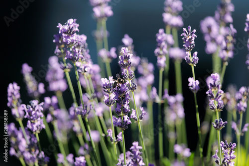 Naklejka premium Blauer Lavendel mit Biene und Insekten