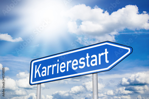 © Stockwerk-Fotodesign, Obraz premium Blaues Schild mit Karrierestart mit Sonne