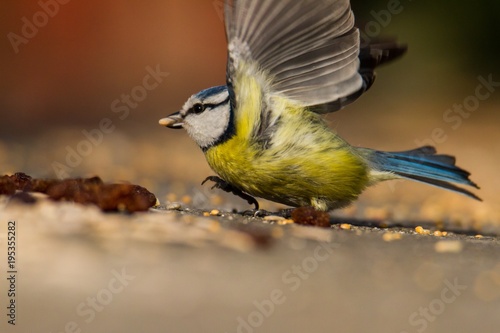 Fototapeta premium Blaumeise kurz vor dem abheben