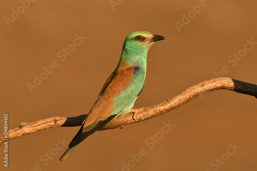 © Christian, Fototapeta premium Blauracke im Sonnenuntergang