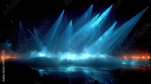 Obraz premium Blazing blue lights illuminate a misty stage