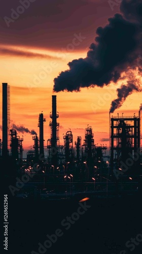 © Kitta Studio, Obraz premium Bleak Industrial Wasteland at Dusk with Dark Silhouettes