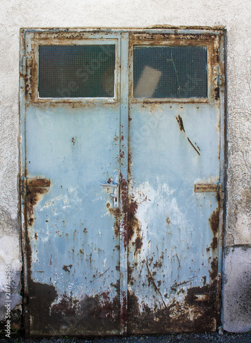 © JoHans, Naklejka premium Blechtüre alt mit zwei Flügel und Fenstereinsätze