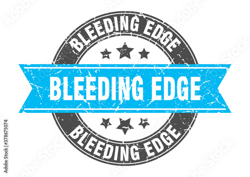 Fototapeta premium bleeding edge round stamp with ribbon. label sign