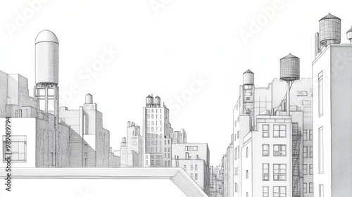 © Business Image, Fototapeta premium Bleistiftzeichnung einer Stadtskyline: ein detaillierter Architektureindruck für Poster und Drucke