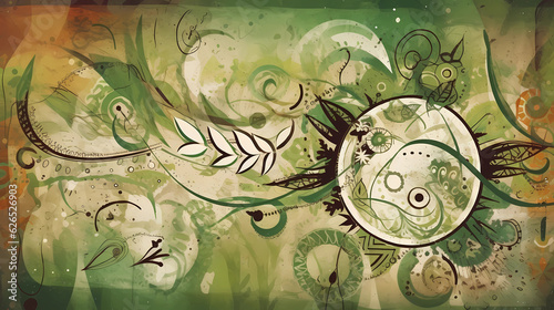 Naklejka premium Blend cannabis - related symbols or elements, such as leaves, buds, or smoking accessories, into an abstract art background