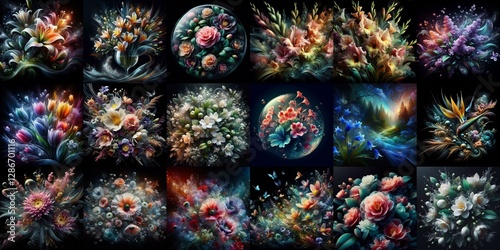 © vector_master, Fototapeta premium Blending of flowers with glass. AI generated illustration