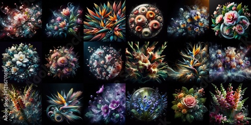 © vector_master, Fototapeta premium Blending of flowers with glass. AI generated illustration