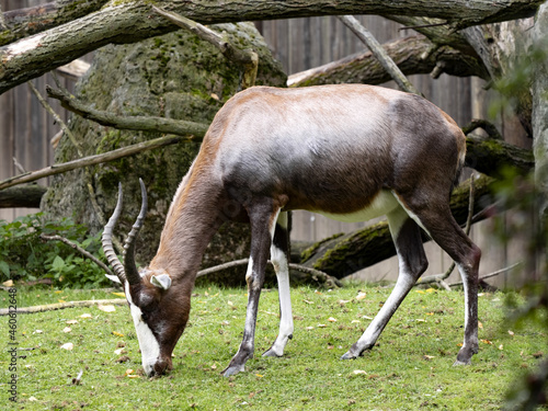 © vladislav333222, Fototapeta premium Blesbok, Damaliscus phillipsi, grazes on green grass