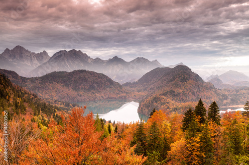 Naklejka premium Blick auf den Alpsee in den Allgäuer Alpen in Bayern im Herbst