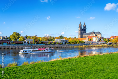 Fototapeta premium Blick auf den Dom in Magdeburg, Sachsen Anhalt, Deutschland