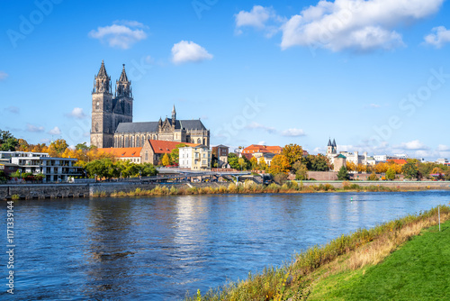 Naklejka premium Blick auf den Dom in Magdeburg, Sachsen Anhalt, Deutschland