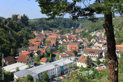 Obraz premium Blick auf den Ort Pottenstein bei Bayreuth