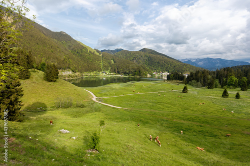 © Harald Biebel, Fototapeta premium Blick auf den Spitzingsee in Bayern nach Osten im Sommer