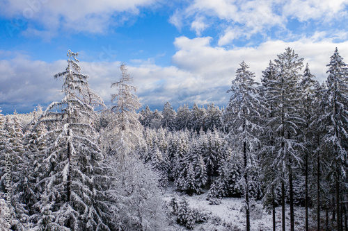 © Thomas Kottal, Obraz premium Blick auf den verschneiten Odenwald