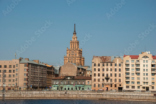 Obraz premium Blick auf die Skyline von Riga mit dem Turm der lettischen Kunstakademie