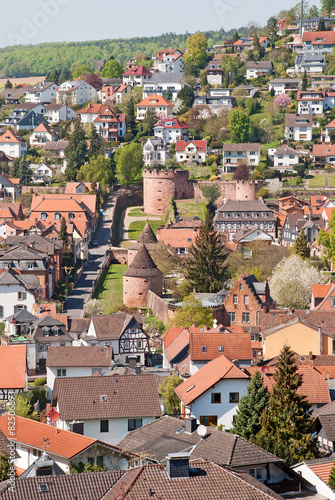 © mojolo, Obraz premium Blick auf die Stadtmauer von Büdingen vom Wilden Stein aus