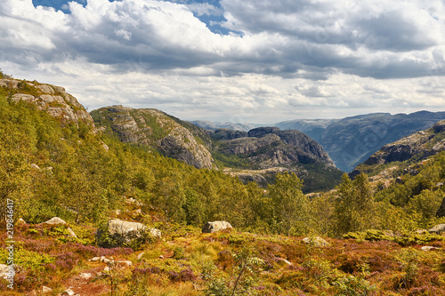 © Christian Buhtz, Fototapeta premium Blick auf Fjord, Sonne und Wolken