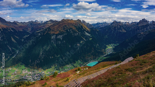 © Jannik Schneider, Naklejka premium Blick auf Gaschurn und Partenen im Montafon