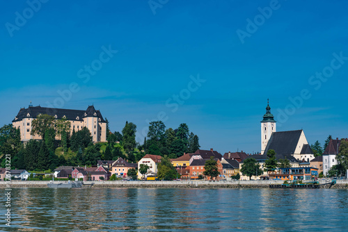 © driendl, Obraz premium Blick auf Grein an der Donau