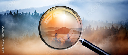 © by-studio, Obraz premium Blick auf Nebelschwaden durch eine Lupe