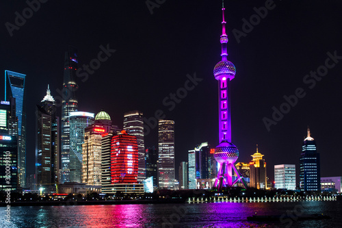Obraz premium Blick auf Pudong mit Fernsehturm von Shanghai.