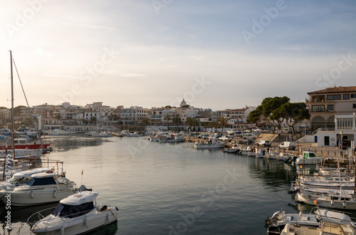 © Blende8, Fototapeta premium Blick über einen Fischereihafen an Spaniens Küste mit einem Jachthafen
